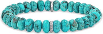 Turquoise 8mm Bead Bracelelt with Diamond Rondelle