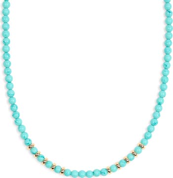 Rich turquoise beads and glossy 18-karat-gold rondelles bring together earthy charm and elegant shine on this choker necklace that easily pairs with day and evening looks.