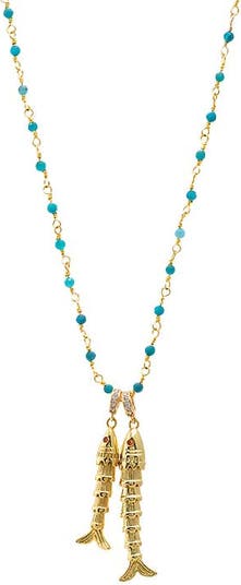 Add a modern twist to timeless style with the Turquoise Beaded Double Fish Necklace by Adina Eden, a reimagined Necklace. A perfect layering essential, this cute necklace for women is available in Turquoise to suit your every outfit. When you want your outfit to feel complete, this piece helps you feel confident and complete—like the final touch your look didn't know it needed. Blend this gold plated necklace with pieces from our Charms & Pendants collection for a finished outfit that feels totally you. Just the right dose of style in a simple, thoughtful detail.