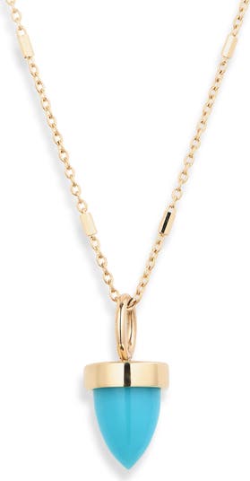 A bullet-shaped turquoise pendant adds a pop of color to this delicate chain necklace made from 14-karat gold and designed to be worn day and night.