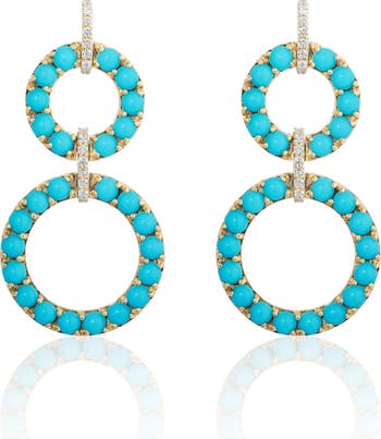 Two rings adorned with turquoise cabochons and connected by pavé links form these eye-catching earrings that brighten your lobes with their pop of color and brilliant sparkle.