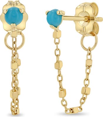 Satellite chains wrap your lobes in these 14-karat-gold earrings centered with turquoise cabochons.