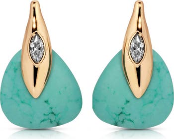 A richly hued turquoise stone is suspended from a dagger-like crystal centered stud on these earrings that add bold color and shine to your look.