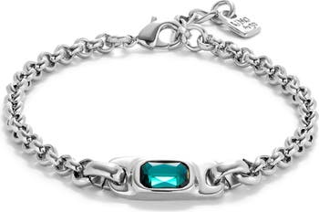 - Sterling silver-plated or 18K gold-plated chain bracelet with green crystal