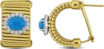 Sparkling cubic zirconia paired with soft compressed turquoise creates elegant omega hoop earrings in two-tone sterling silver. Their sophisticated design adds a refined touch, perfect for enhancing everyday style or celebrating special occasions. A timeless pair that radiates charm and beauty effortlessly.