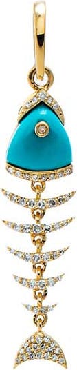 Turquoise Diamond Fish Bone Drop Pendant 14K