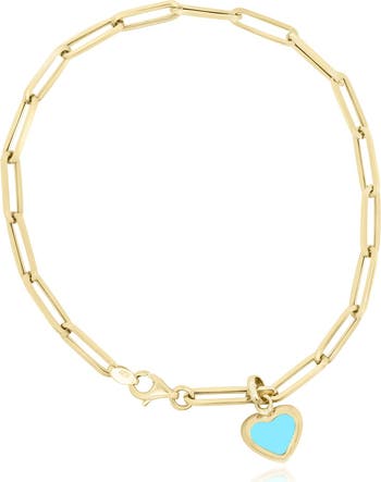 The Lovery Fine Jewelry Turquoise Heart Paperclip Bracelet, Alternate, color, Turquoise