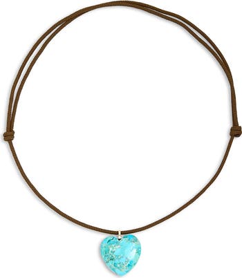 A single diamond tops a turquoise heart pendant to bring a spot of shine to this beachy necklace that adjusts to your liking on sliding paracord.