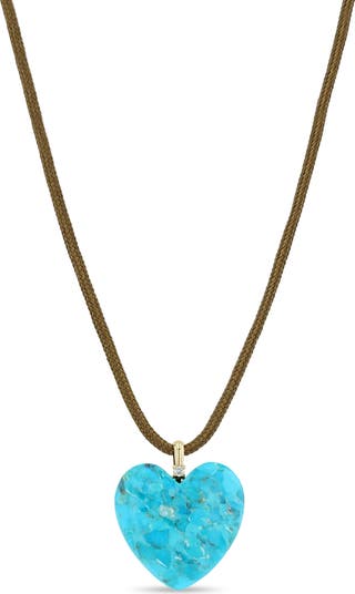 A single diamond tops a turquoise heart pendant to bring a spot of shine to this beachy necklace that adjusts to your liking on sliding paracord.