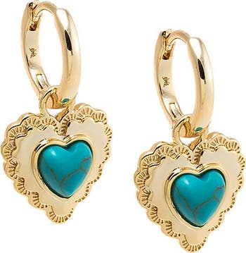 Turquoise Heart Shield Drop Huggie Earring