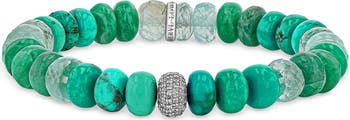 Turquoise Mix 8mm Bead Bracelet with Diamond Donut