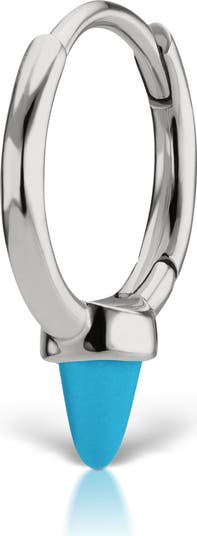 A turquoise spike adds a pop of color to this gleaming clicker hoop cast in 14-karat gold.