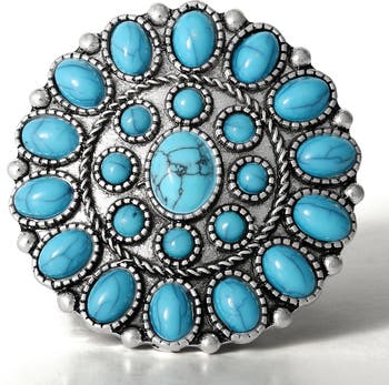 - This oversized turquoise ring exudes Texas Glam thanks to its lavish turquoise stone embellishments.