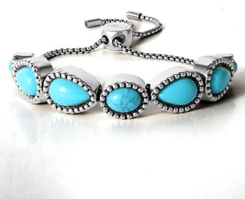 Jessica Simpson Jewelry: This turquoise bracelet exudes Texas Glam thanks to the turquoise stone embellishments and eye-catching lariat design.