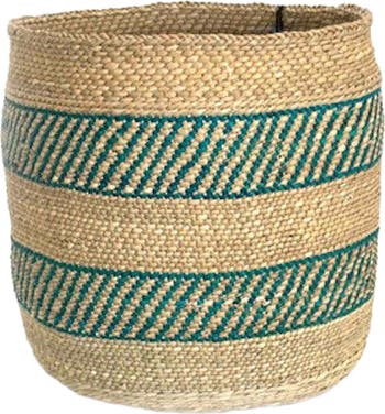 This collection of Iringa baskets features the natural fiber color with the traditional striped pattern in a gorgeous turquoise color achieved by natural plant dyes. Made from Milulu grass which grows wild in Tanzania and woven by women, these baskets give you global style while being completely functional. This is handmade item and each one will vary slightly in size.