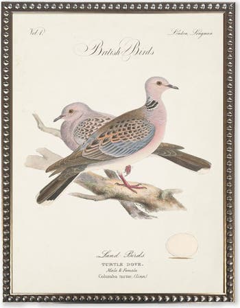 This vintage-inspired print, framed in a silver-beaded wooden frame, features two turtle doves. Sized at 18 inches by 24 inches, this made in the USA frame makes for a beautiful addition to any wall.