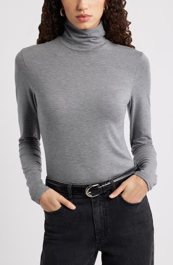 Every closet craves this soft turtleneck top made with a kiss of stretch for a close fit.