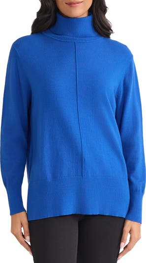 A raised front seam adds simple detail to this bouclé sweater trimmed with soft ribbing and topped with a cozy fold-over turtleneck.