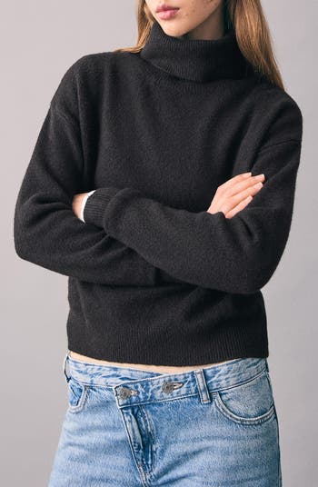 Cozy up by the fire in this woolly sweater knit in a relaxed silhouette and topped with a posh turtleneck.