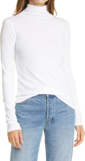 Crafted from soft cotton, this closet-essential scrunch-turtleneck top is ideal for layering or wearing alone.