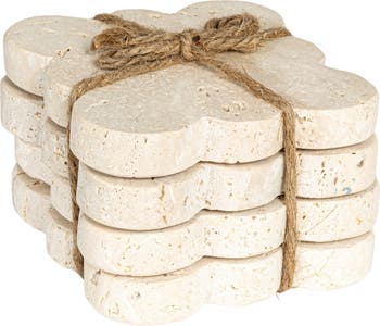 - A set of 4 travertine coasters, each with a beautifully scalloped edge and a natural, earthy presence