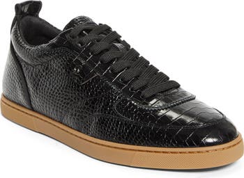 Made of glossy croc-embossed calfskin leather, this red-soled sneaker features an understated CL Mooncrest monogram and breathable perforations.