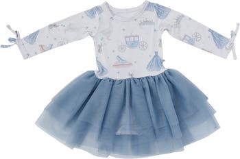 The top and long sleeves are crafted from our soft, breathable premium viscose fabric. Underneath, the fabric continues into a built-in bodysuit with easy crotch snaps, keeping everything comfortably in place through every spin, crawl, and cuddle. The bottom is made from premium tulle and cascades down in a tiered fashion.