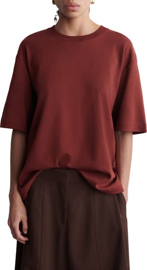Slouchy but not sloppy, this T-shirt is made from soft organic-cotton jersey with elbow-length sleeves and a widened hem that adds to the relaxed drape.