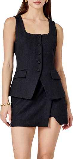 A sleek figure-skimming vest is updated in workday-perfect tweed and finished with a cutaway hem for easy movement.