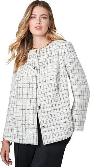 Timelessly stylish in chic tweed, this jacket is a must-have layer that takes you from your workday to a night out. Pair it with slacks and a blouse or jeans and a tee – it's that versatile.