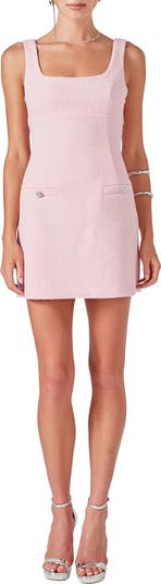 Sparkling buttons and textured twill bring timeless polish to this curve-skimming minidress.