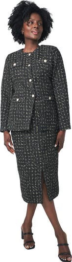 Nothing says fall-forward outfitting like sophisticated tweed — so we crafted the Jessica London women's plus size Tweed Skirt Suit in this timeless fabric. This set features an always-feminine flared lady jacket and matching pencil skirt. Wear them together or mix them in with other workwear favorites in your closet.
