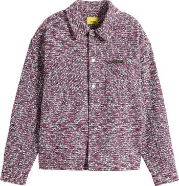 Bright colors and soft cotton bring a fresh update to the richly textured tweed fabric of a jacket that pairs a pointed collar with unconstructed shoulders to keep the look both smart and relaxed. Gleaming snaps and logo hardware on one pocket add metallic pops to the bold, standout style.