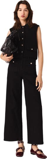 This crop top has a couture feel with its delicately beaded jewel collar and velvet trim. Its structured cut and patch pockets give it a confident look, while the lining ensures comfort and support. A refined piece with exquisite details.Wear with high-waisted wide-leg trousers or a short skirt to balance the proportions, and accessorise with a compact bag to accentuate its chic style.