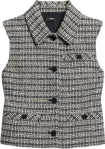 Keep your look chic and classic with this structured tweed vest featuring a point collar and impeccable welt pockets.