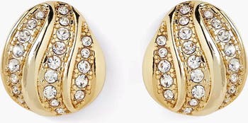 A modern take on a classic silhouette. Those Maxi Studs are sculpted with soft, flowing ridges that wrap around the ear, creating a bold yet refined shape. Set with rows of light-catching stones, they bring a subtle shimmer that elevates everyday styling. Designed to sit comfortably against the lobe, these earrings balance statement and wearability polished enough for evenings, effortless enough for daily wear. The organic dome form reflects light beautifully, adding depth and dimension to a timeless gold finish. A go-to piece for understated impact.
