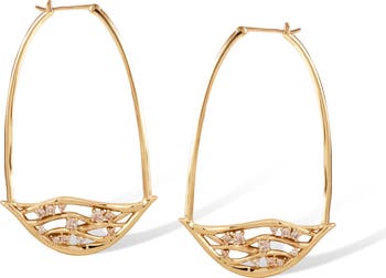 - Crafted in gold-plated brass set with shimmering zircon, featuring a unique curved hollow design that captures the essence of cascading waves at sunrise, blending quiet serenity with powerful vitality.