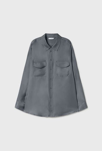 The relaxed fit of our Boyfriend Shirts are built with a button-down front and utility pockets, creating a versatile top echoing a traditional menswear style. With a twill introduction to one of our favourite silhouettes, the Boyfriend Shirt offers a new texture for added wardrobe styling options.
