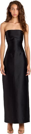 The Twill Column Dress is a gorgeous statement dress with a strapless fitting bodice with side boning, and a cut out back and tie fastening. It is fully lined and crafted from a structured twill fabrication in a maxi length.