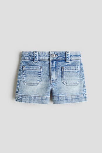 Shorts in soft cotton twill with adjustable elastication at the waist, a zip fly with a button, and front patch pockets.