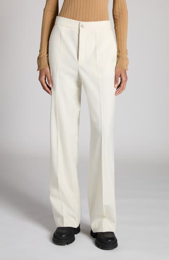 Sharp creases front and back underscore the polished look of straight-leg pants that are made of wool-enriched twill and finished with a logo-embellished snap.