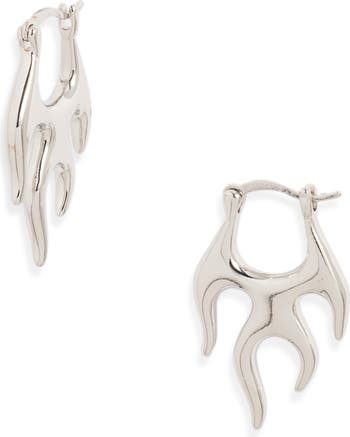 Bring fiery shine to your lobes with these sculptural hoop earrings plated in gleaming rhodium.