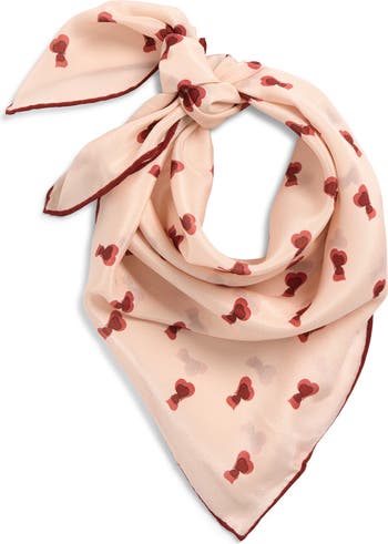 Deal a winning look when you accessorize with this whisper-light silk bandana covered in a whimsical print of doubled-up hearts.