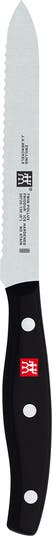 This utility knife with a serrated edge cuts cleanly through tough-on-the-outside, soft-on-the-inside foods, including tomatoes, bagels and salami.