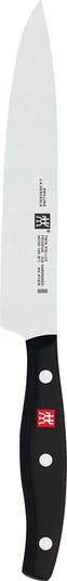 How it's made: Signature Zwilling craftsmanship marks this knife precision-stamped from a single piece of German steel, resulting in a lighter-weight knife that does not compromise sharpness. It's fitted with an ergonomic, triple-riveted polymer handle that is superbly weighted for easy use. The ice-hardened FRIODUR blade starts sharper, stays sharper longer and has superior resilience.