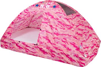 Sweet dreams await your child in this durable bed tent that can accommodate a twin-size mattress. It features doors that can be tied back with radius-cut hook-and loop-fasteners as well as mesh walls that allow for ventilation while keeping bugs at bay. It also has an interior pocket for their favorite essentials. It has double-stitched seams along stress points for reinforcement, and color-coated poles and pole pockets for fast and easy assembly.