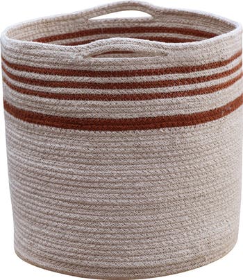 This washable handmade basket rich in recycled cotton provides ideal toy storage while making any nursery extra charming.