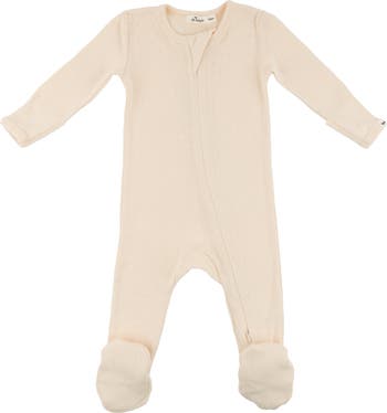 The oh baby! Pointelle Footie in Twinkle Natural is a must-have for your little one this summer! Made with soft cotton and a cozy lining in the feet, this lightweight footie is perfect for your little one's summer adventures. Plus, the fold-over mitts keep their hands safe and snug. Available in infant sizes. Designed in Minnesota.