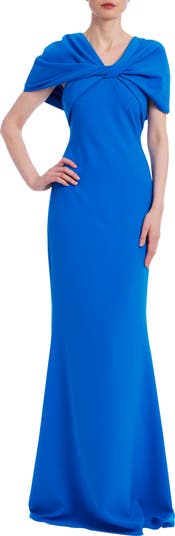 Twisting and ruching shape the bodice of a captivating gown designed to get glasses raised in tribute.