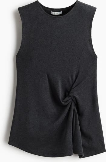 Vest top in a fine knit with a round neckline and a twisted detail at the front.